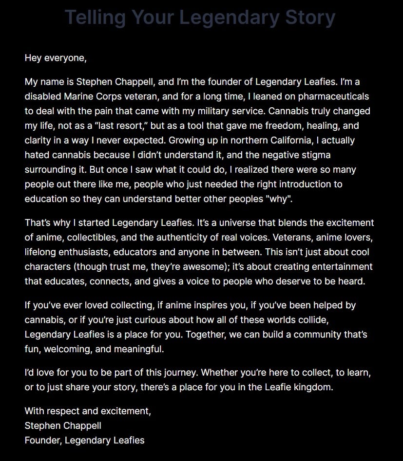 Stay in the loop with Legendary Leafies and get a heads-up when something new is in town.